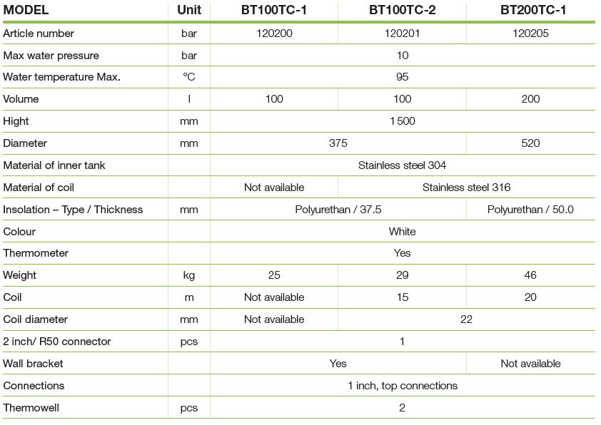 120205 BT200TC-1 buffer tank 200 l, white, top connected, 20 m coil, price 1050 eur +VAT